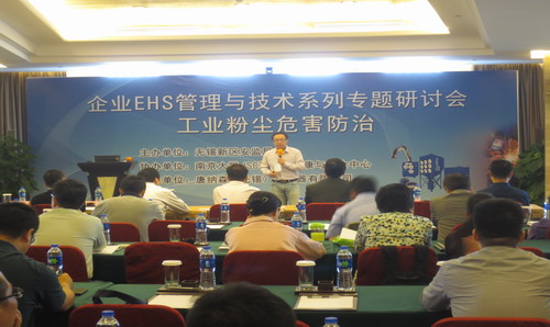 研讨会上无锡新区安监局职业健康监管科长杨晓杰,介绍了职业健康管理形势与政策,特别是尘肺病防治情况和挑战;上海高达资深职业卫生专家朱人讲解了工业粉尘的种类、危害及防治措施;EHS 中心讲师戚志强老师介绍了职业健康和工业粉尘危害防治的法律法规标准要求;唐纳森公司技术专家张云、刘忠东分享了工业粉尘种类及防治解决方案的选择。四家跨国公司的EHS管理人员也分享了各自企业在工业粉尘危害防治方面的宝贵经验。最后与会代表就关心的职业健康管理,工业粉尘防治以及废气处理等问题向嘉宾提问,并分享了相关经验。